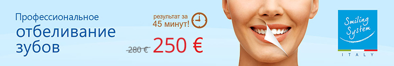 Профессиональное отбеливание зубов по специальной цене 250 Евро.