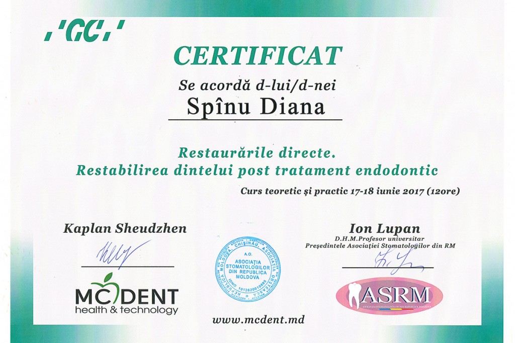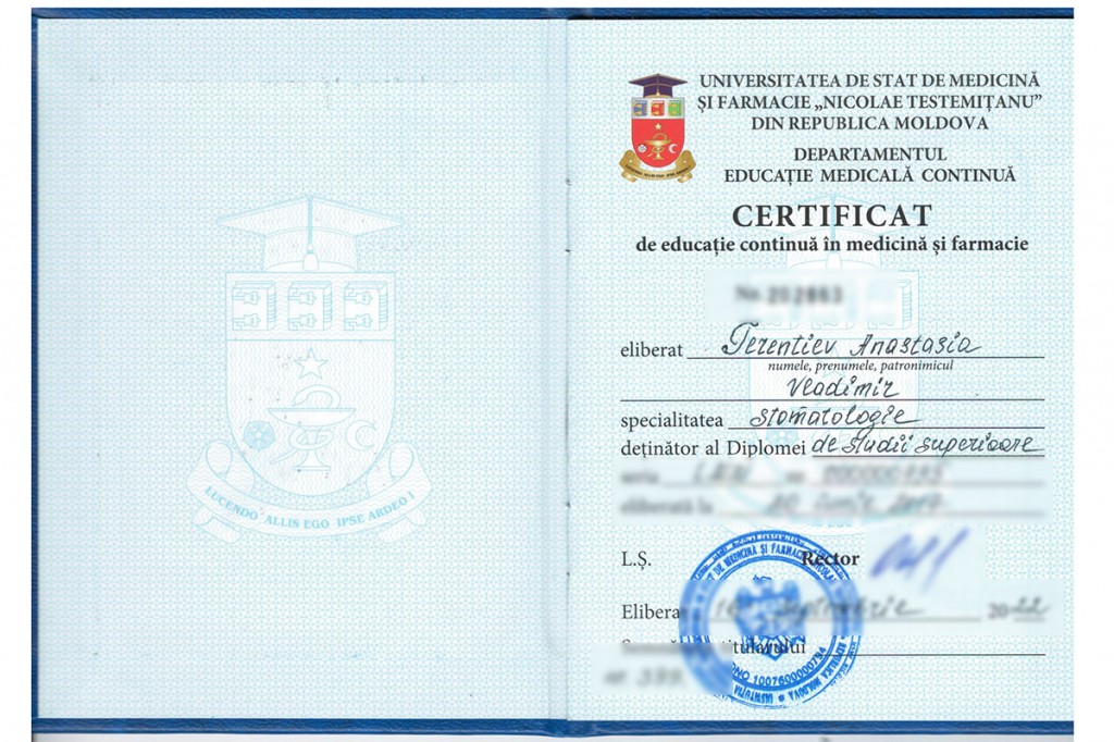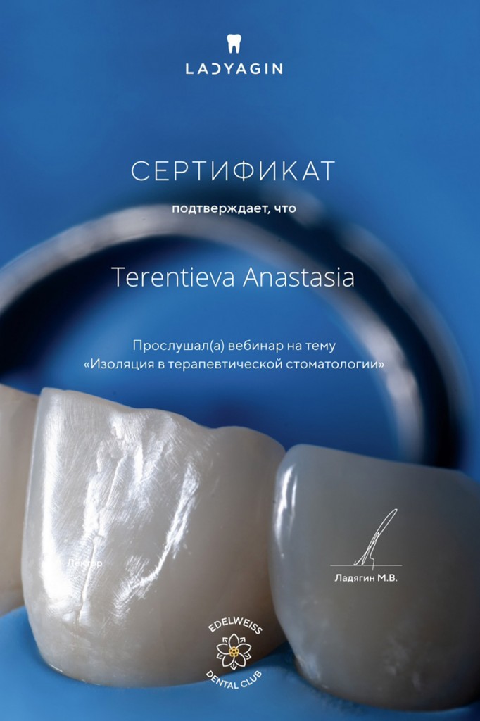 Стаж работы: 6 лет. Сертифицированный врач стоматолог